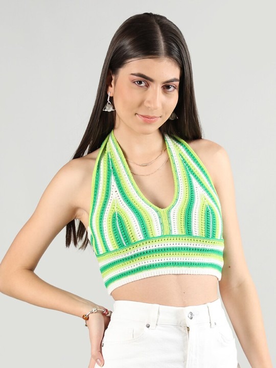 Among the most standout crop tops to wear with jeans, the crochet style is perfect for sun-soaked vacations, beach festivals, or music weekends. It’s lightweight, breezy, and instantly adds character to your look.
