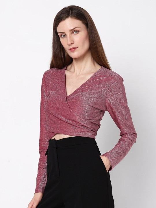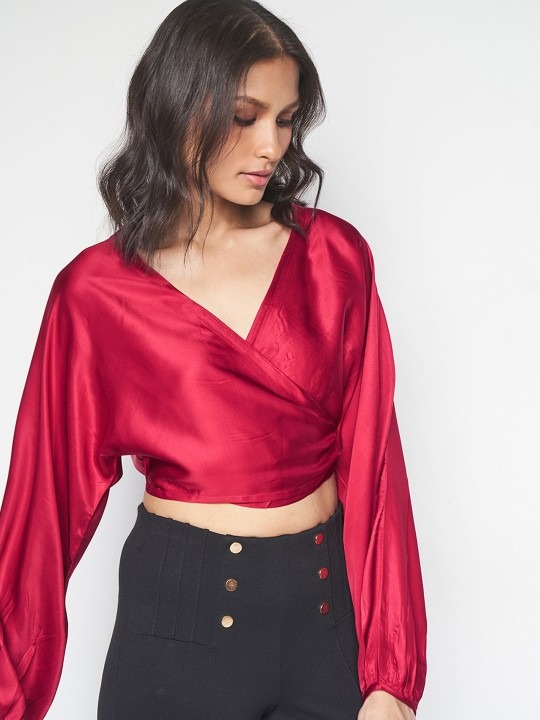 • Satin Wrap Crop Blouse — ideal for date nights and special occasions [Shop on Myntra]