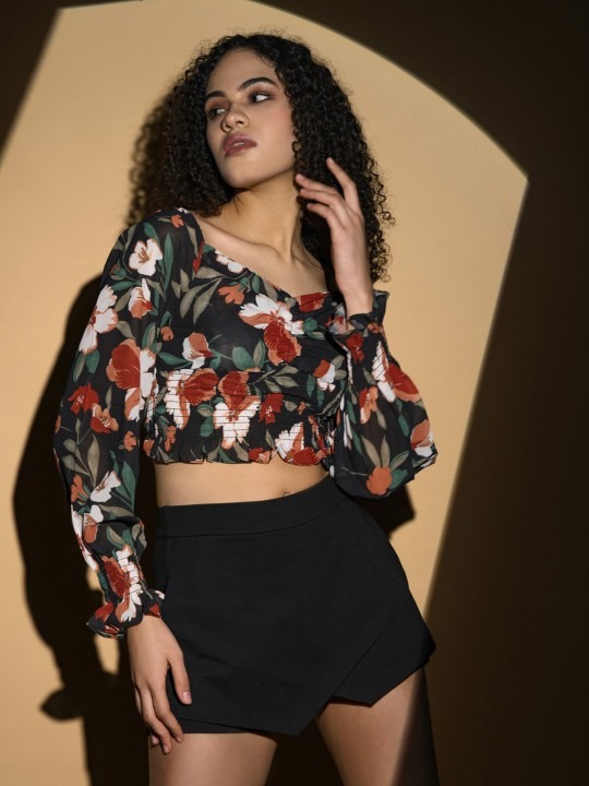 Smocked Floral Crop Top – Best Crop Top to Wear with Jeans for Summer Vibes