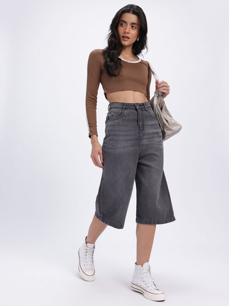 This is one of the most reliable crop tops to wear with jeans, no matter the cut — mom jeans, wide-leg, straight fit, or even denim shorts. Whether you’re into capsule wardrobes or just love a low-maintenance fashion hack, this minimalist crop top is a no-brainer.