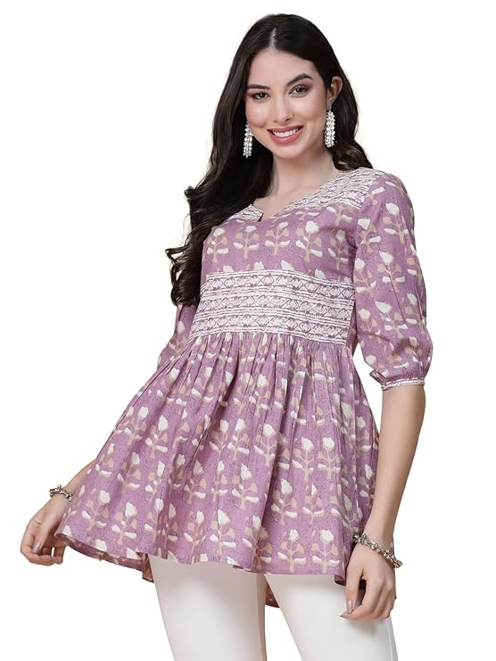 Want to blend traditional charm with modern flair for festive or cultural events? The Global Desi Ethnic Cotton Peplum Top delivers the perfect Indo-western fusion. Crafted from breathable cotton and adorned with beautiful hand-block prints, it’s ideal for small celebrations, pujas, or family gatherings where comfort and style both matter.