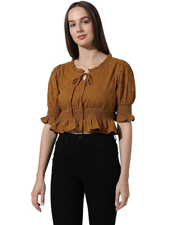 Its slightly cropped length and fitted waist create a modern silhouette that pairs perfectly with high-rise bottoms. It’s the kind of Cotton Peplum Top that feels elevated yet easygoing, making it ideal for lunch dates, semi-casual events, or even Instagram-worthy summer outings.