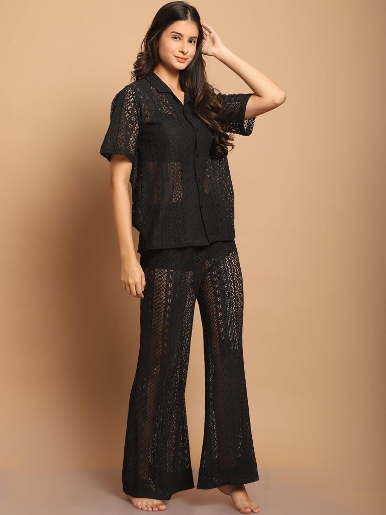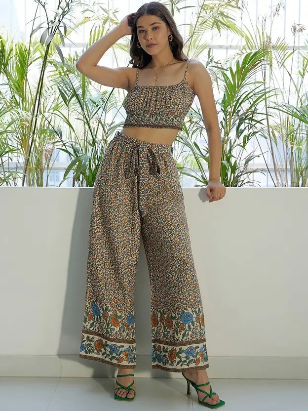 Why it’s trending: Boho crochet co-ords are a visual treat—earthy, breathable, and incredibly Instagrammable. The intricate knit details paired with soft, flowy cuts give off a carefree yet stylish energy, making them a staple at events like Coachella and Lollapalooza.